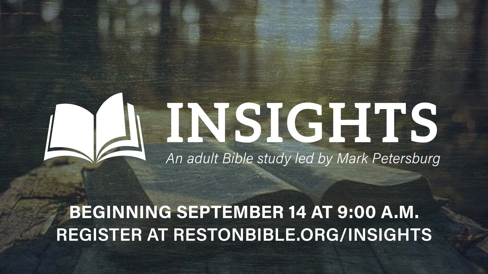 A new adult Bible study, led by Mark Petersburg, begins Sunday morning, September 14, during the 9:00 hour in the Youth Building.