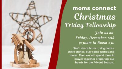 Moms Connect Fellowships are for moms of all ages. Each fellowship includes a speaker and lots of time to connect with other moms.