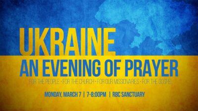 We invite you to join us for an evening of prayer on behalf of the people of Ukraine and for our Ukrainian and Russian brothers and sisters in Christ.
