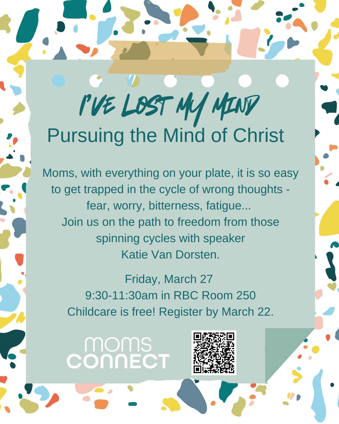 Moms Connect is a place where moms with kids from infancy to elementary age can come and learn, share, and connect with other moms. We’ve all been “new” before and we have a heart to make sure no mom feels alone. We can’t wait to meet you!